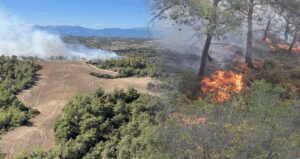 Adana’nın Sarıçam ilçesinde çıkan orman yangınına havadan ve karadan müdahale ediliyor.
